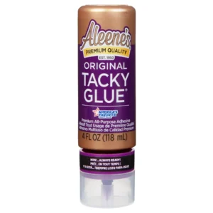 Duncan Crafts Aleene’s Always Ready Original Tacky Glue er et svært allsidig, sterkt lim som tørker klart. Dette flytende limet er ideelt for en rekke husarbeid og hobbyprosjekter. Du kan ikke bare bruke det til å lime alle typer papir, men også filt, isopor, tre, metall, glass, keramikk, porselen, plast og ikke-vaskbare stoffer. Ideelt for å feste små ting som knapper, paljetter og edelstener. Takket være det omvendte stativet er limet alltid klart til bruk.Når du bruker limet på papir, stoff eller porøse materialer, er det nok å påføre et tynt lag. Med tyngre materialer som tre, keramikk og halvporøse materialer trenger du et tykkere lag med lim. Bruk om nødvendig en limklemme under tørking. La prosjektet tørke i 37 til 47 minutter (avhengig av temperatur, fuktighetsnivå og tykkelse på påføringen) for best resultat. Under bruk er Aleene’s Tacky Glue hvitt, men etter tørking blir det helt gjennomsiktig. Overflødig lim kan enkelt fjernes med såpe og vann. Siden limet løser seg opp i vann, er denne varianten ikke egnet for liming av tekstiler som skal vaskes, som klær eller putevar. Til det kan du bruke Aleenes spesielle Fabric Fusion.