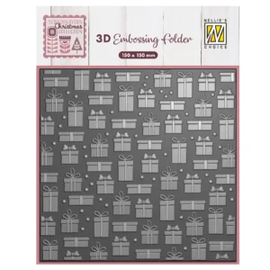 Lag 3D-design på kortene og andre papirarbeidsprodukter med pregemappen fra Nellie’s Choice (tidligere Nellie Snellen). Denne 3D-pregemappen er laget for å prege unike bakgrunner på forskjellige typer papir, med et gavemotiv. Preging gir en hevet finish på papirhåndverksdesignene dine. Mappen er perfekt for alle typer prosjekter, fra gratulasjonskort og bursdagskort til invitasjoner og dekorative detaljer i utklippsbøkene dine. Nellie’s Choices pregemapper kan brukes i de fleste stanse- og pregemaskiner.